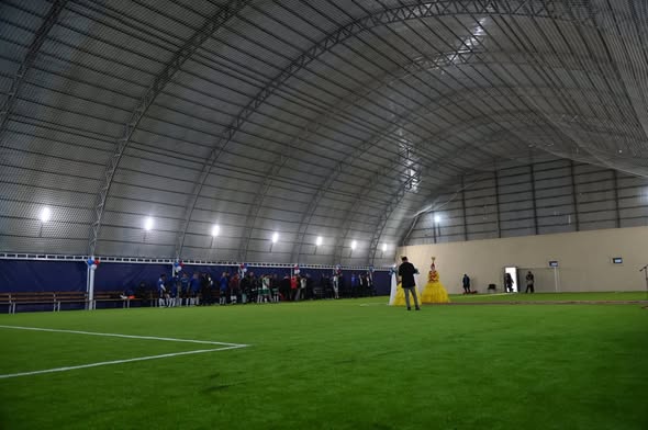 Нысанның бой көтеруіне жеке кәсіпкер Данияр Тоқбаев мұрындық болғаны ерекше аталып өтті. Алаңның жалпы ауданы 1 250 шаршы метрді құрайды және ол жыл бойы тұрғындардың спортпен айналысуына мүмкіндік береді. Жабық үлгідегі футбол алаңы ауа райына тәуелді болмай, спортшыларға барлық мезгілде жаттығу жасауға жағдай жасайды.