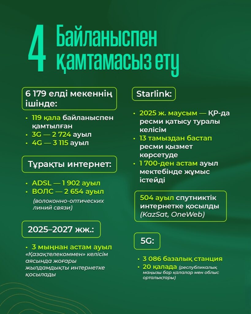 Білім беру саласында да маңызды өзгерістер бар. Қазіргі уақытта 20 жоғары оқу орнында жасанды интеллект бағытындағы білім беру бағдарламалары енгізіліп, білікті кадрлар даярлауға басымдық берілуде. Цифрландыру мен жасанды интеллектті дамытуға бағытталған бұл кешенді шаралар еліміздің технологиялық дамуын жеделдетіп, мемлекеттік қызметтерді халыққа барынша ыңғайлы әрі тиімді етуге негіз болмақ.