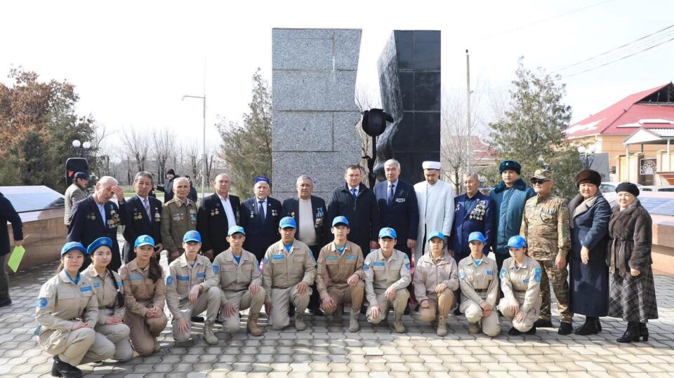 Жиналған қауым алдымен сол соғыста мерт болған жауынгерлердің құрметіне қойылған монументке гүл шоқтарын қойып, марқұмдарды бір минуттық үнсіздікпен еске алды.