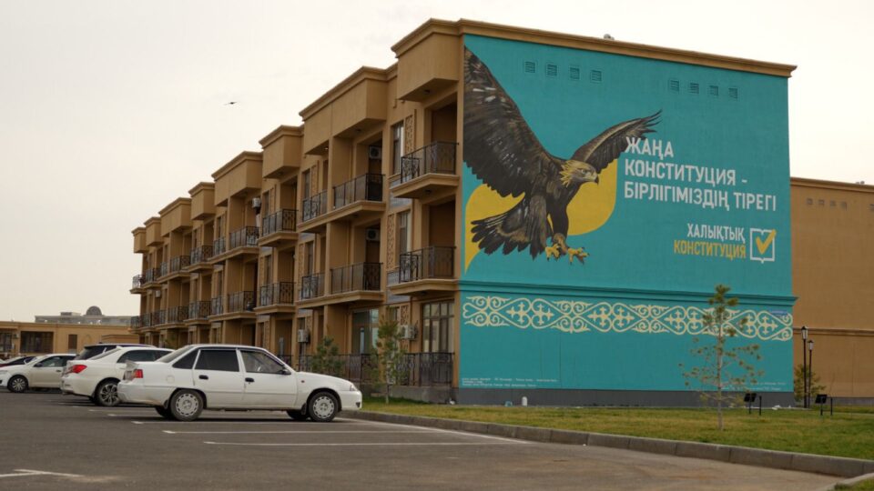 В городе Туркестан состоялось масштабное и содержательное мероприятие в поддержку конституционной реформы. На фасаде жилого дома, расположенного на территории одного из главных туристических центров города – комплекса Керуен сарай, за счёт личных средств предпринимателей был создан специальный конституционный мурал.