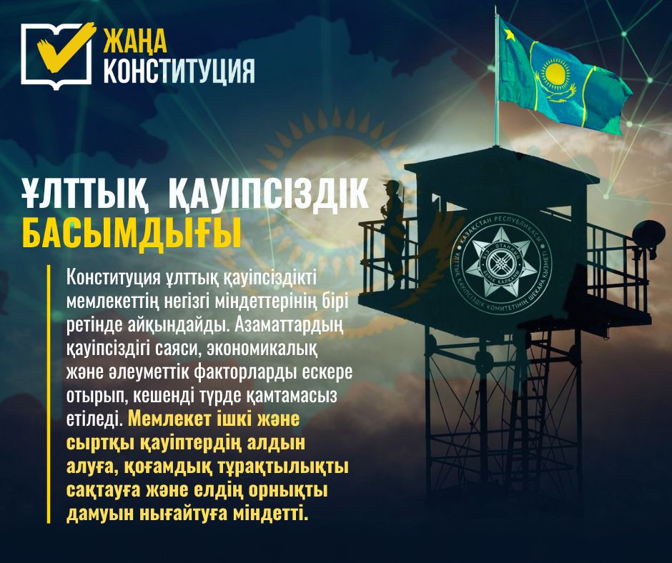 Ұлттық қауіпсіздік басымдылығы – Қазақстанның тұрақты дамуы мен стратегиялық мүдделерін қорғаудың негізі. Мемлекет пен қоғам бірлесіп, қауіпсіз әрі сенімді ел қалыптастыру жолында нақты қадамдар жасайды.