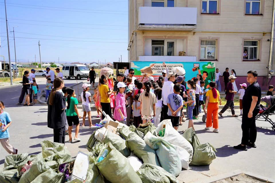 В городе Кентау в рамках программы «Таза Қазақстан» проведено мероприятие по уборке дворов многоэтажных жилых домов. Проект с участием жителей города, в том числе родителей и детей, приурочен к Международному дню «Мир без отходов» с целью охраны окружающей среды под названием «Один пакет мусора – одно мороженое».